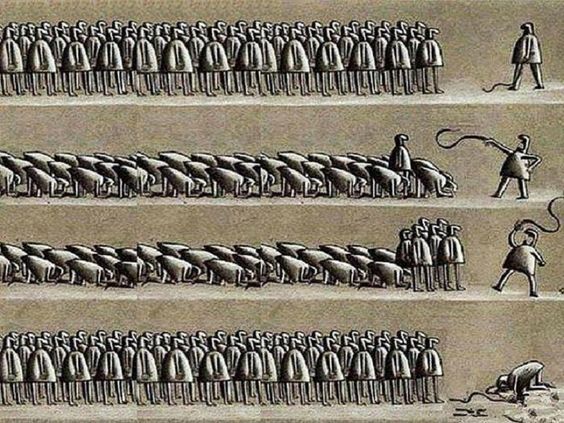 O poder não precisa, necessariamente, ser derrubado de seu posto, apenas não devemos mais tolerá-lo, diz La Boétie, pois veremos, “como um grande colosso do qual se retirou a base, ruir sob o próprio peso.”