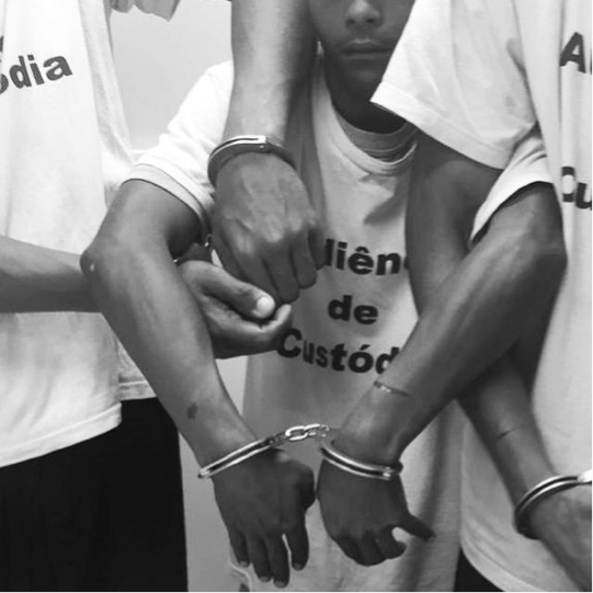 Aliás, diante da inversão da lógica contida na citada decisão sumulada do STF, o certo seria denomina-la como Súmula Vacilante, pois é simplesmente ignorada pelos aplicadores do Código de Processo Penal de Benfica (CPPB). A título ilustrativo, extrai-se a realidade ocorrida no dia 13 de janeiro de 2020, quando 73 (setenta e três) pessoas foram apresentadas à autoridade judicial e todas elas foram mantidas algemadas. Caso os números não convençam os meus poucos leitores, são colacionadas as seguintes fotografias tiradas no momento de contenção desse novo ser tido como atávico pelos operadores do CPPB: